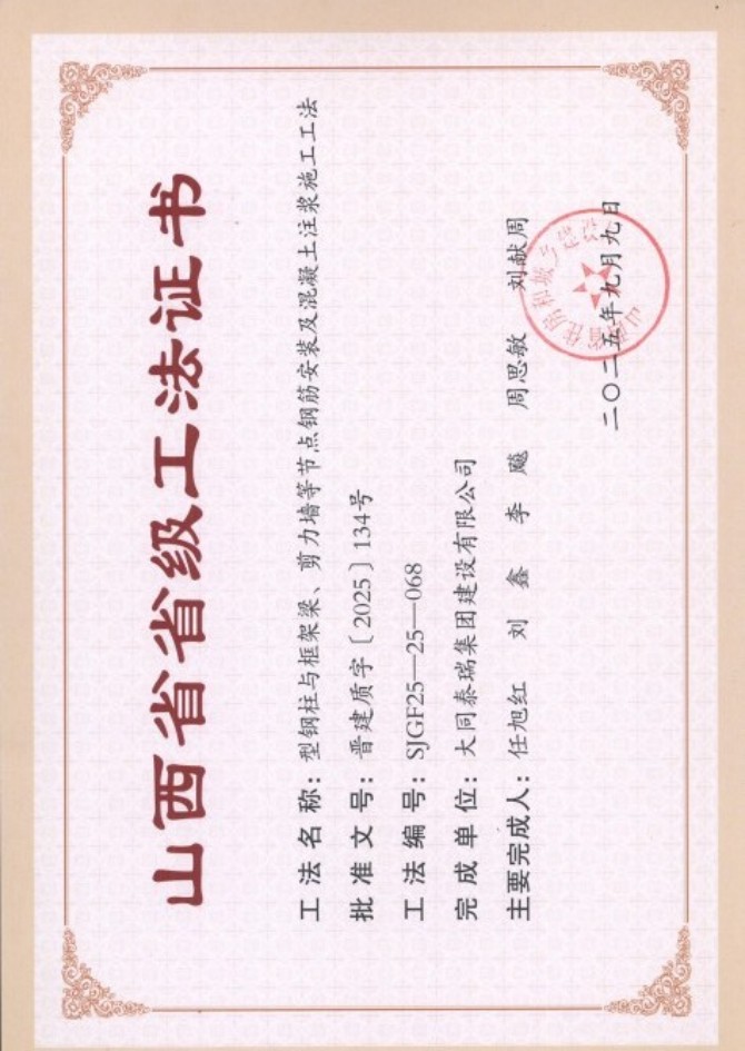 我们始终把科技创新摆在发展全局的核心位置,以技术攻坚破解发展难题,以成果转化激活发展潜能,全年斩获实用新型专利授权9项、省级工法3项、国家级QC成果2项,《砌筑施工防污染技术》斩获中施协国家级工程创新三等奖,还成功参编2项国家团体标准,实现了技术研发与行业标准制定的双向突破。集团持续深化产学研协同合作,搭建技术创新交流平台,鼓励一线技术人员开展工艺革新,让科技创新成为赋能产业升级的核心支撑。